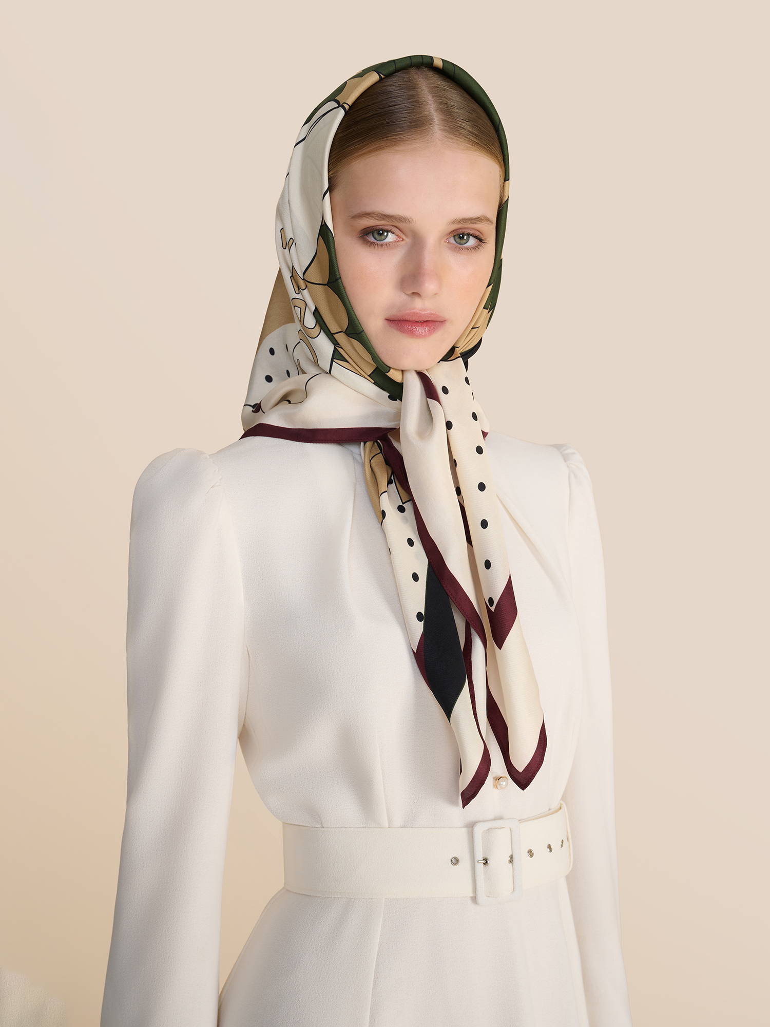 In recognition of Anti-Slavery day on Saturday 18th October, we are introducing a new product into our Liberté collection, the Liberté scarf. Crafted from 100% silk, the scarf is inspired by a vintage print, a bold dove in flight meeting the timeless word ‘Liberté'—two powerful symbols united in one striking design. The dove, recognised across cultures as an emblem of peace, soars alongside freedom's promise, reminding us that neither can exist without the other.