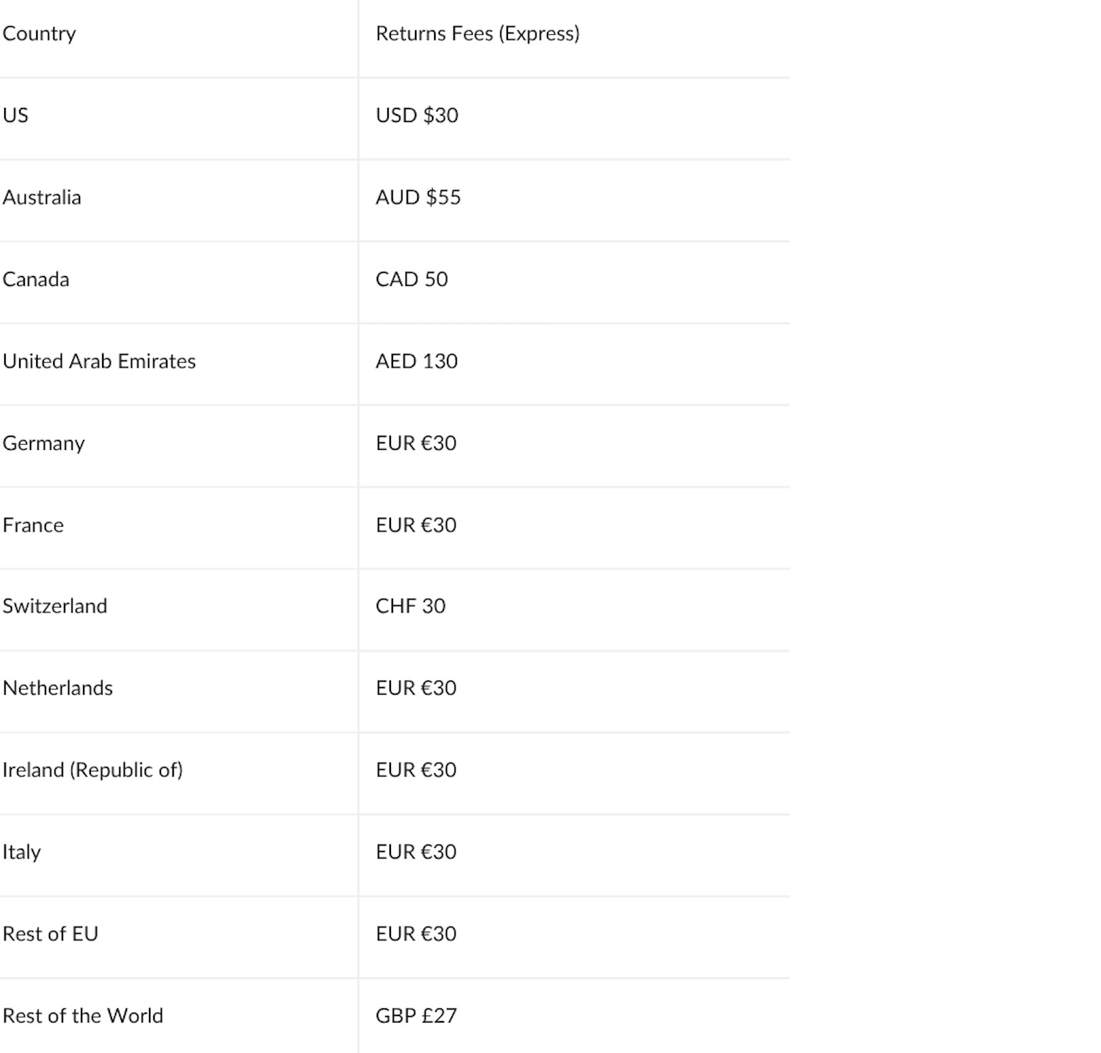 Please note: making a UK return to Beulah costs £7.50 which will be deducted from your total refund amount due back to you.