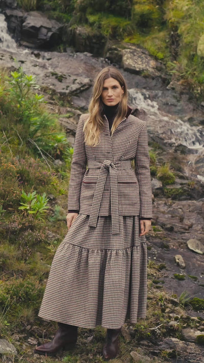 New Arrival for this season. The Rosa Country Check Skirt is this season's stunning tiered maxi, offering timeless elegance and effortless versatility. Made from a beautiful wool blend, this skirt will be an essential in the colder months.
